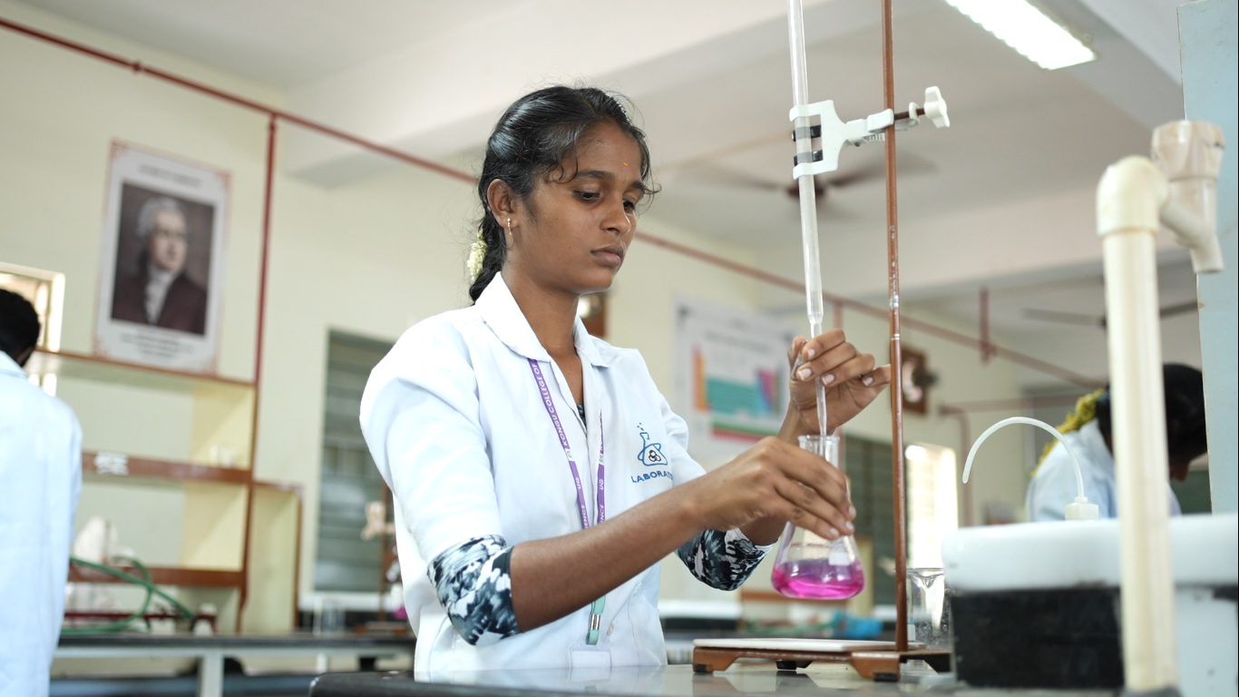 The B.Sc. Programme, started in 2021, is designed to provide strong foundations in fundamental and advanced areas of chemistry to develop competent chemists. The programme emphasizes hands-on training, greener laboratory practices, project-based learning, and experiential activities such as internships and industrial visits. Effective teaching–learning methods and co-curricular support help students grow while fulfilling the vision and mission of the department and institution.